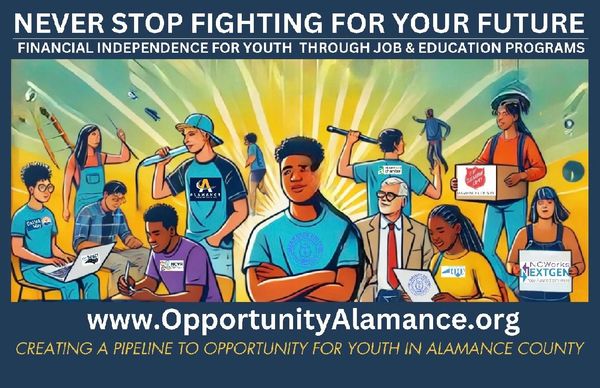 Established in 2022, Opportunity Alamance is part of the “CAROLINA ACROSS 100" Collaborative program based out of UNC Chapel Hill. The program's goal is to create opportunities for 6400+ youth between age 16-24, surrounding education and employment such as college, trade school, and/or assist them with finding full-time employment.